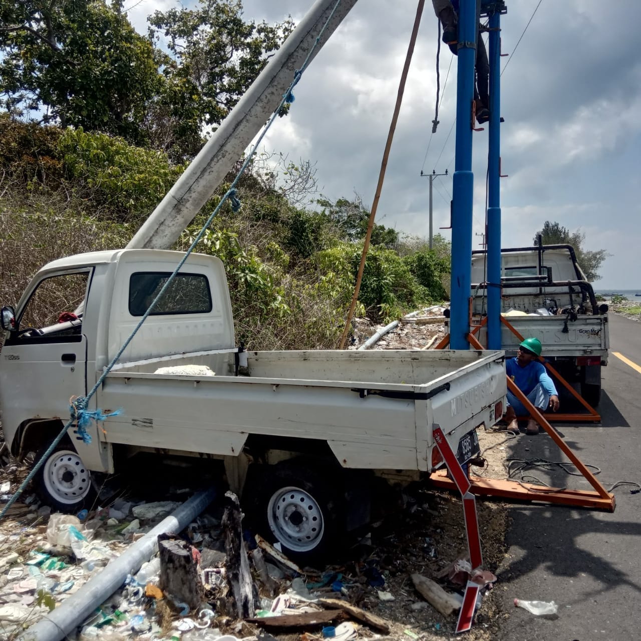 Lakalantas tunggal menyebabkan tiang listrik roboh dan berkat kesigapan seorang Petugas Base Transceiver Station (BTS) Telkomsel, Andi Muhammad Irwan, yang kebetulan lewat saat awal pertama kali kejadian.
