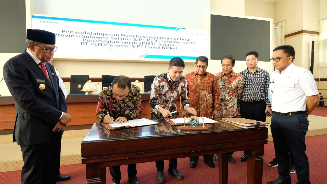Bertempatkan di Kantor Gubernur Sulawesi Selatan, penandatanganan Nota Kesepahaman dengan Pemprov Sulsel dilakukan oleh Gubernur Sulawesi Selatan Nurdin Abdullah dan Direktur Bisnis PLN Regional Sulawesi, Syamsul Huda. Sementara untuk penandatanganan SPJBTL dilakukan antara Direktur Utama PT Huadi Nickel Alloy, Jos Strefan Hidecky dengan General Manager PLN UIW Sulselrabar Ismail Deu disaksikan oleh Gubernur Sulsel dan Direktur Bisnis PLN Regional Sulawesi.