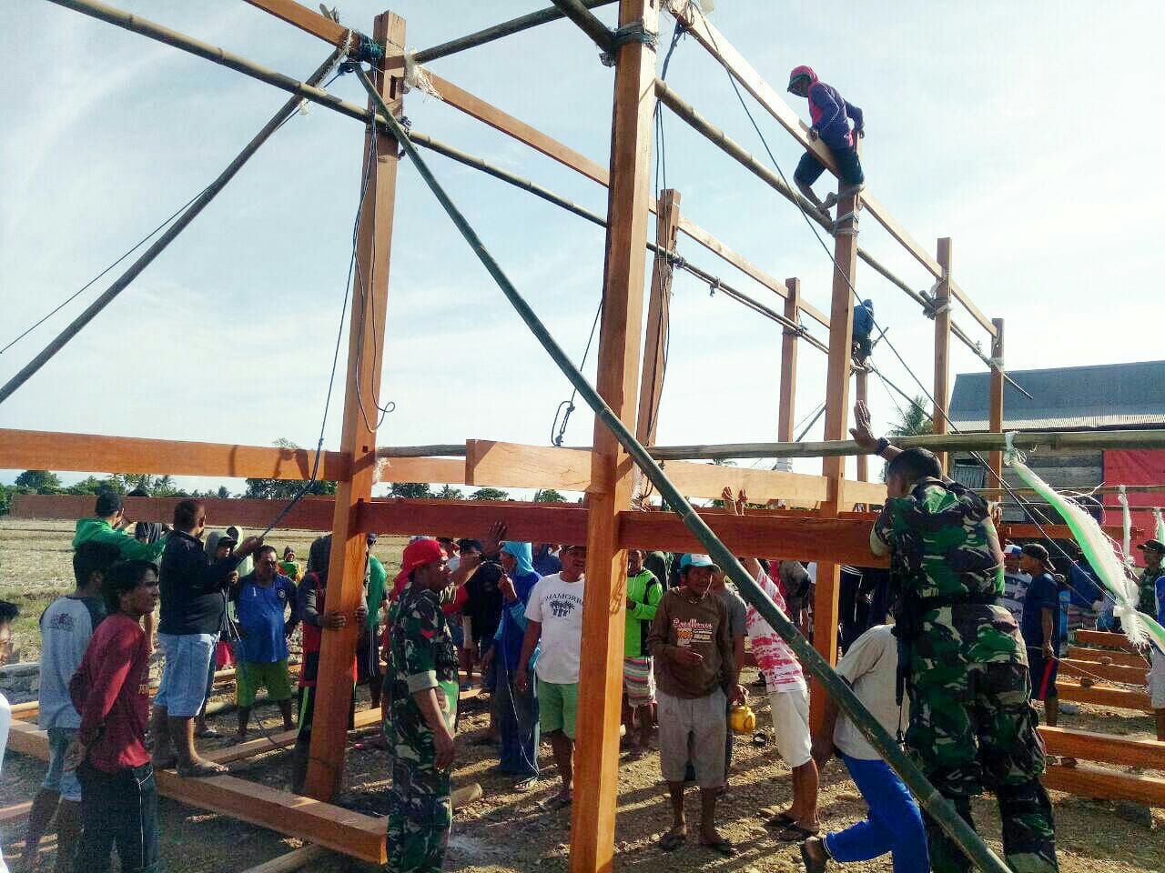 Sidrap, MitraSulawesi.id–Kebersamaan dan rasa peduli yang tinggi di perlihatkan anak asuh Dandim 1420 Sidrap, Letkol Inf J.P. Situmorang, S.Sos, hal itu nampak beberapa personil Kodim 1420 Sidrap bersama Warga bergotongroyong mendirikan kerangka rumah salah satu warga, Bapak Anwar Umur 50 Tahun di Lingkungan 1 Kelurahan Salomallori Kecamatan Duapitue Kabupaten Sidrap, Rabu (18/12/2019) pagi.