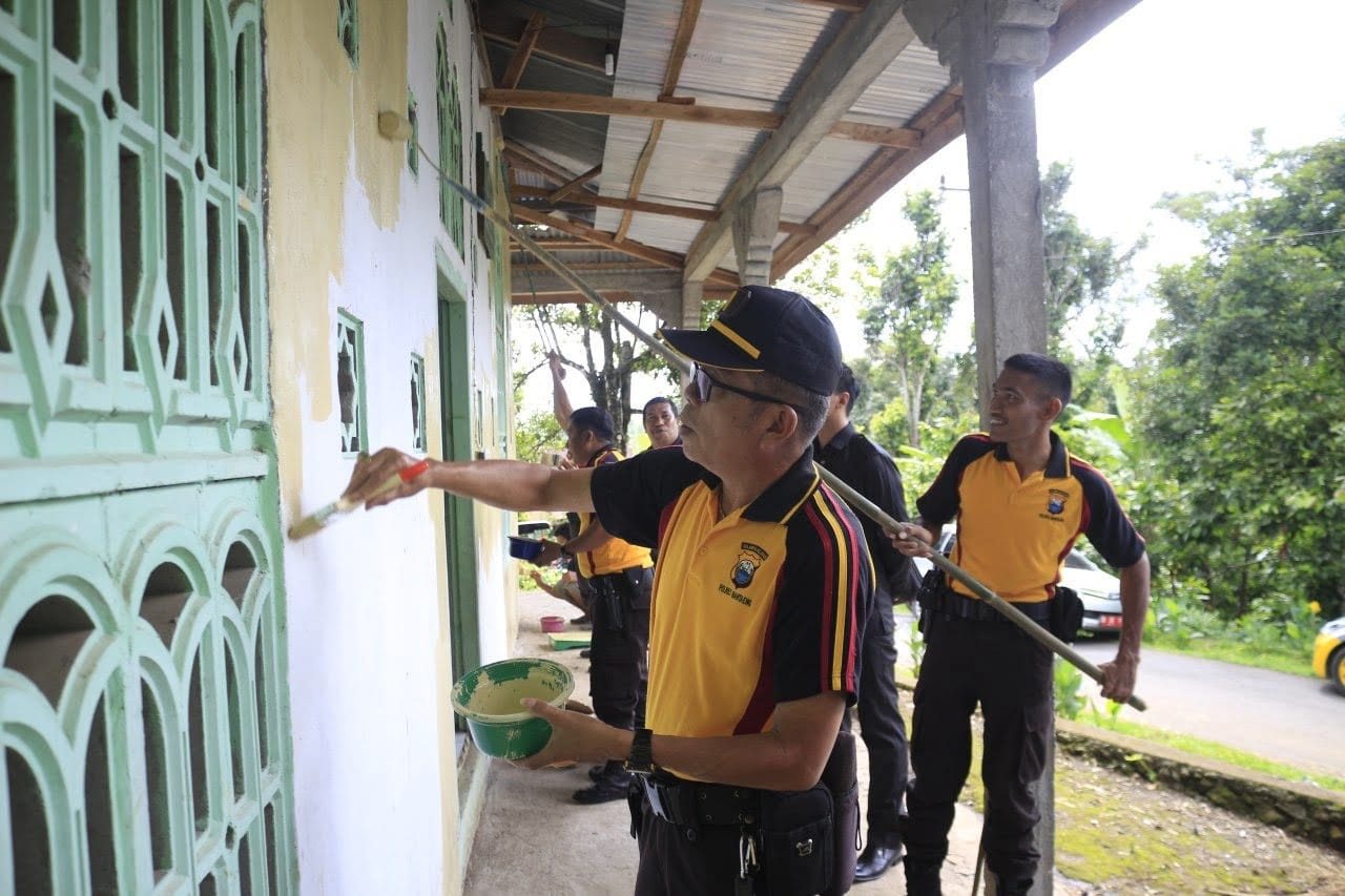 Bantaeng, mitrasulawesi.id – Kepolisian Resort (Polres) Bantaeng melakukan kerja bakti pengecetan masjid Babussalam Pettasile di Kelurahan Campaga, Kecamatan Tompobulu, Kabupaten Bantaeng pada Selasa, 4 Februari 2020.