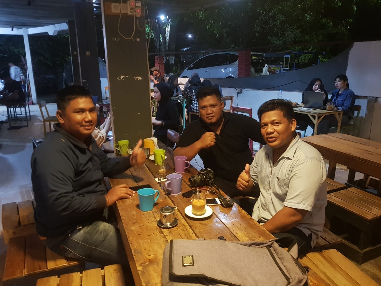 Nampak di kafe 54, 3 pemuda asal Sidrap berbincang-bincang prihal perkembangan Daerahnya seraya tak lupa menyeguk segelas kopi yang ia pesan sebelumnya.