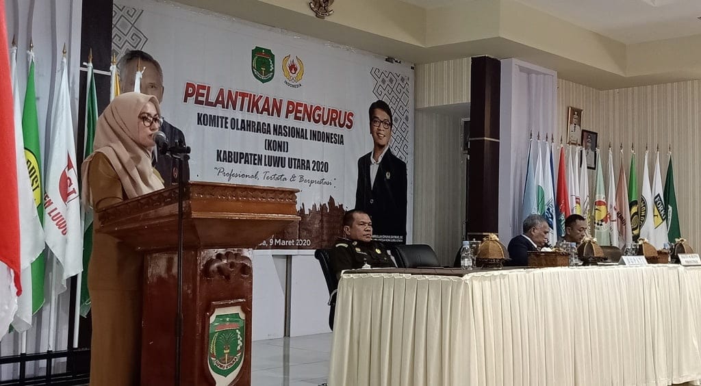 LUTRA, mitrasulawesi.id – Pernyataan menarik disampaikan Bupati Luwu Utara, Indah Putri Indriani, saat menghadiri Pelantikan Pengurus Komite Olahraga Nasional Indonesia (KONI) Kabupaten Luwu Utara Periode 2020 – 2024. di hadapan Ketua KONI Provinsi Sulawesi Selatan, Ellong Tjandra, Indah Putri Indriani menyatakan kesiapan Luwu Utara menjadi tuan rumah Pekan Olahraga Daerah (Porda) Provinsi Sulawesi Selatan pada 2026 mendatang.