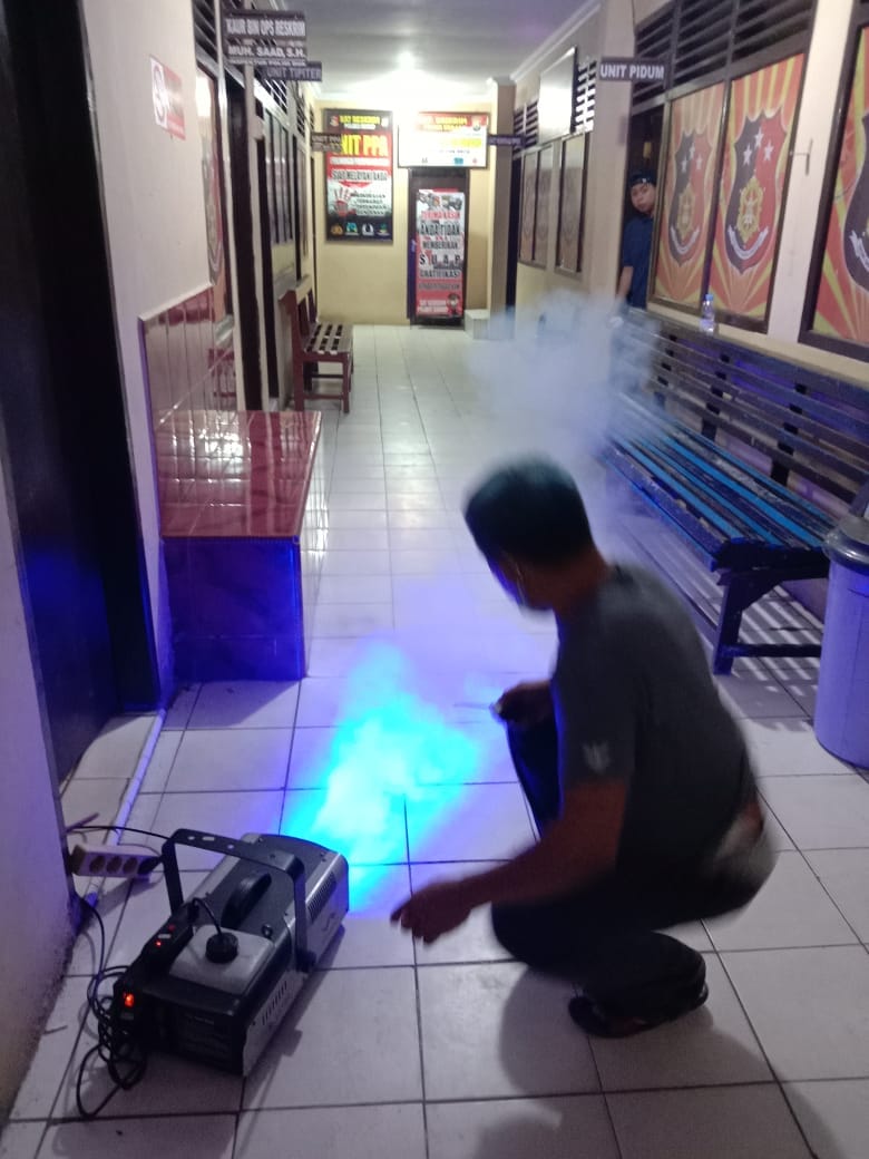 Kapolres Sidrap AKBP Leonardo Panji Wahyudi mengatakan, penyemprotan dilakukan pada tiap ruangan digedung utama, termasuk ruang tahanan, SPKT hingga seluruh ruang kerja personil Polres.