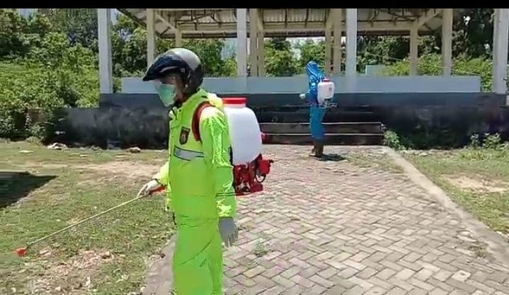 “Bersama-sama Instansi terkait melakukan bersih-bersih dan menyemprotkan cairan disinfektan ditempat tempat masyarakat biasa berkumpul seperti pasar dan Kantor kantor pelayananan masyarakat,” ujar Kapolsek.