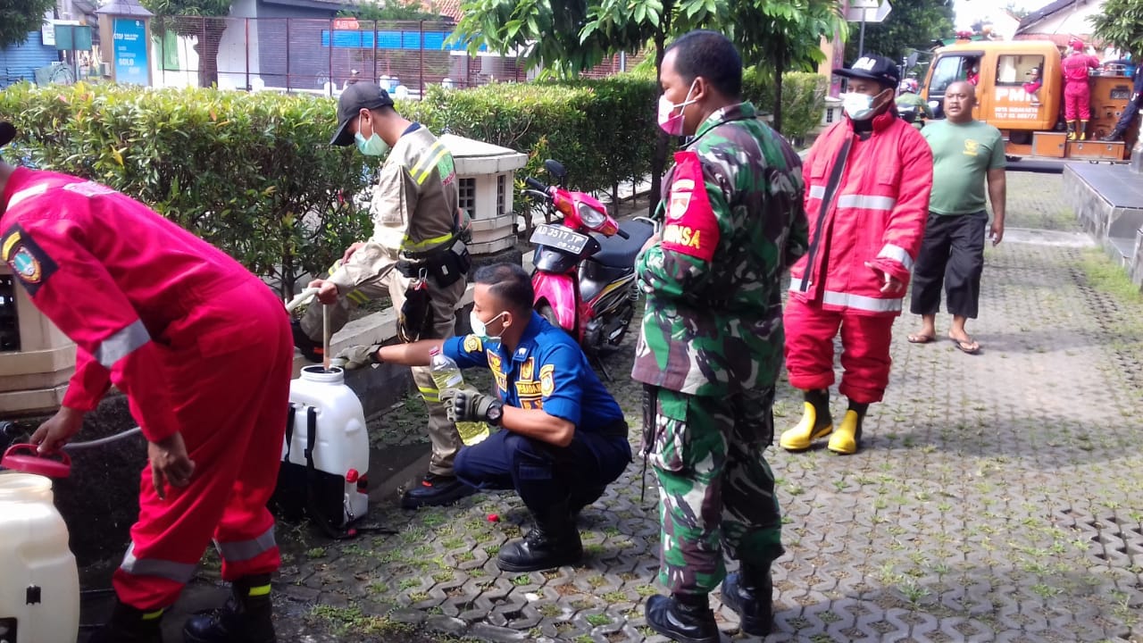 Lanjut berbagai langkah sehat dan sigap dilakukan para angota Babinsa dan Pemerintah Kelurahan Sangkrah untuk mengantisipasi mewabah virus Corona di wilayah binaanya, Mereka dikerahkan dan langsung turun ke sejumlah lokasi keramaian yang sering dikunjungi masyarakat, sambil melakukan sosialisasi upaya pencegahan penyebaran virus Corona serta penyemprotan cairan desinfektan,” ujar Serda Sukatno