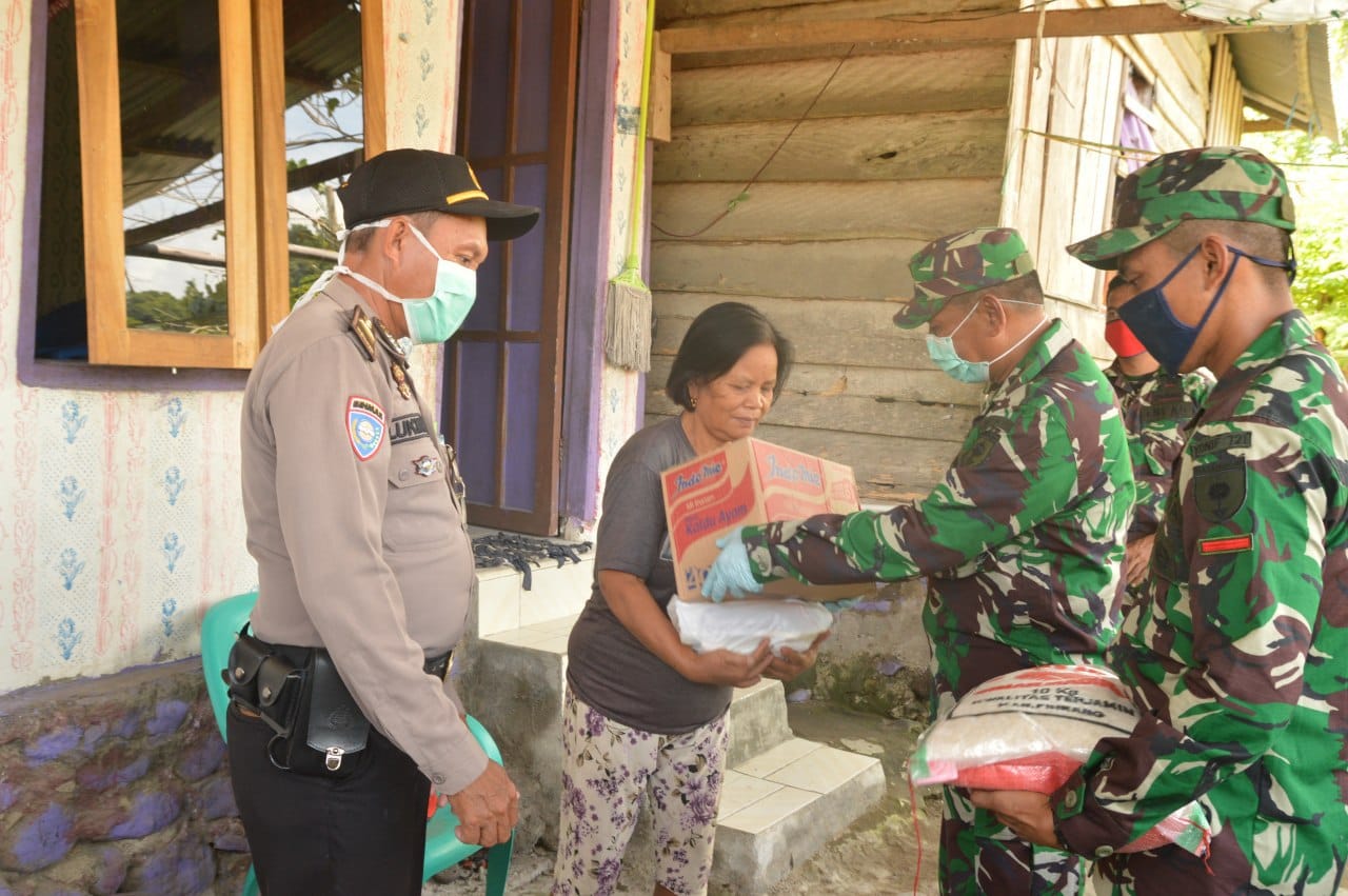 “Hari ini TNI bersama Polri membagikan Sembako kepada masyarakat yang kurang mampu, ini merupakan salah satu wujud kepedulian terhadap masyarakat yang saat ini dihimbau untuk tetap tinggal dirumah guna memutus penularan covid – 19 ” Ucap Mayor Arh Rosyadi.