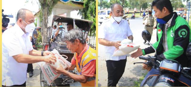LABUHANBATU, MITRASULAWESI.ID – Bupati Labuhanbatu H. Andi Suhaimi Dalimunthe, ST.MT, membagikan sembako berupa 5 Kg Beras dan 1 kg Gula Pasir kepada 100 orang Abang Becak dan Ojek Online (OJOL) di sepanjang jalan SM. Raja Kecamatan Rantau Selatan, Selasa (15/4/20).