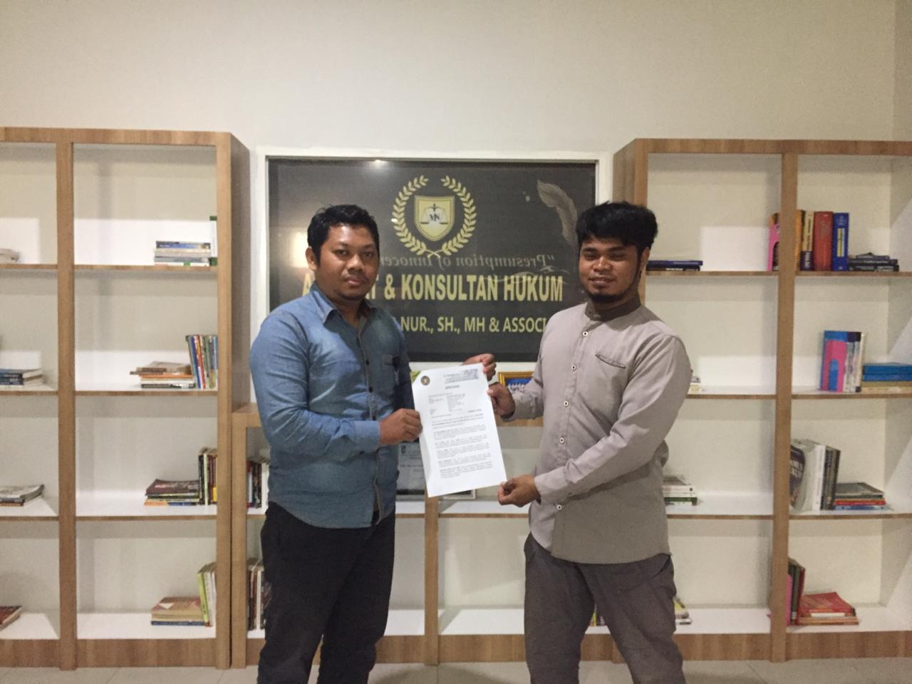 Sya’ban Sartono Leky datang dengan seorang diri tanpa di dampingi keluarganya mendatangi Kantor Law Firm DR.Muhammad Nur,SH,MH & Associates untuk menyerahkan Surat Kuasa yang telah ditanda tangani dan diterima oleh salah satu Kuasa Hukum Peri Herianto,SH di Citraland Celebes Hertasning Baru Gowa Sulawesi Selatan.