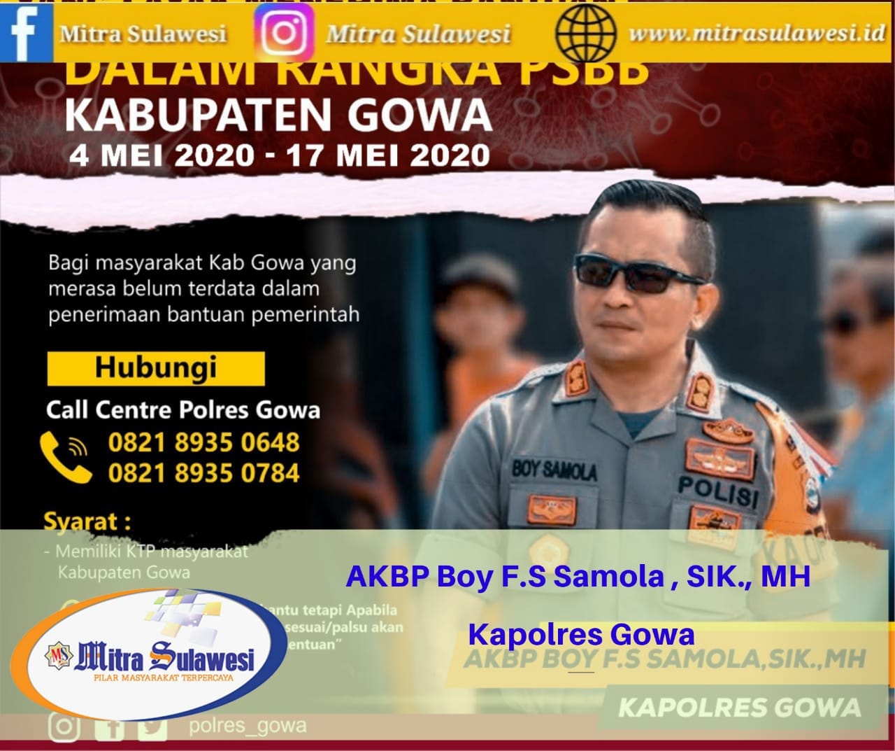 “Mau dapat bantuan dimasa PSBB, hubungi nomor telfon yang kami cantumkan, gak perlu datang ke Polres lagi,” tulis Tambunan Humas Polres Gowa, Kamis (30/4).