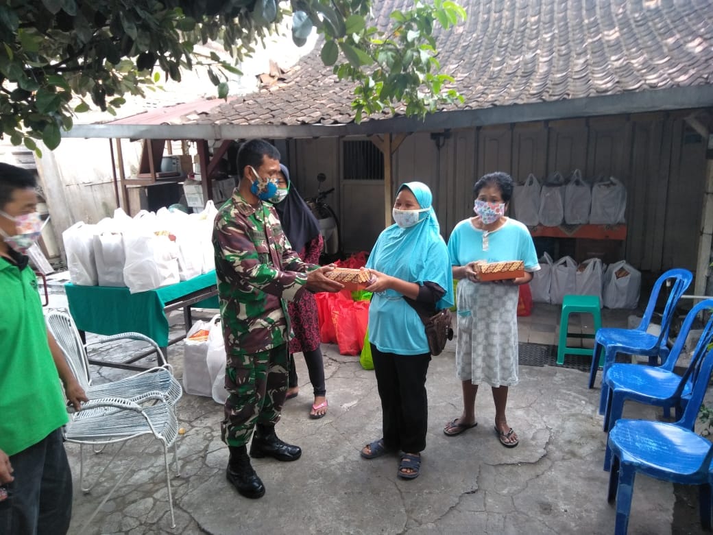 Sebagai upaya untuk membantu sesama ditengah pandemi Virus Corona (Covid-19) yang berdampak pada perekonomian semua kalangan khususnya masyarakat yang tidak mampu, Danramil 05 Pasar Kliwon Kapten Cpl Warji dan Babinsa dan Anggota Kodim 0735/Surakarta bersama Bhabinkamtibmas Polresta Surakarta membagikan nasi Kotak kepada masyarakat di wilayah kecamatan Pasar Kliwon Kota Surakarta, Kamis (30/4).