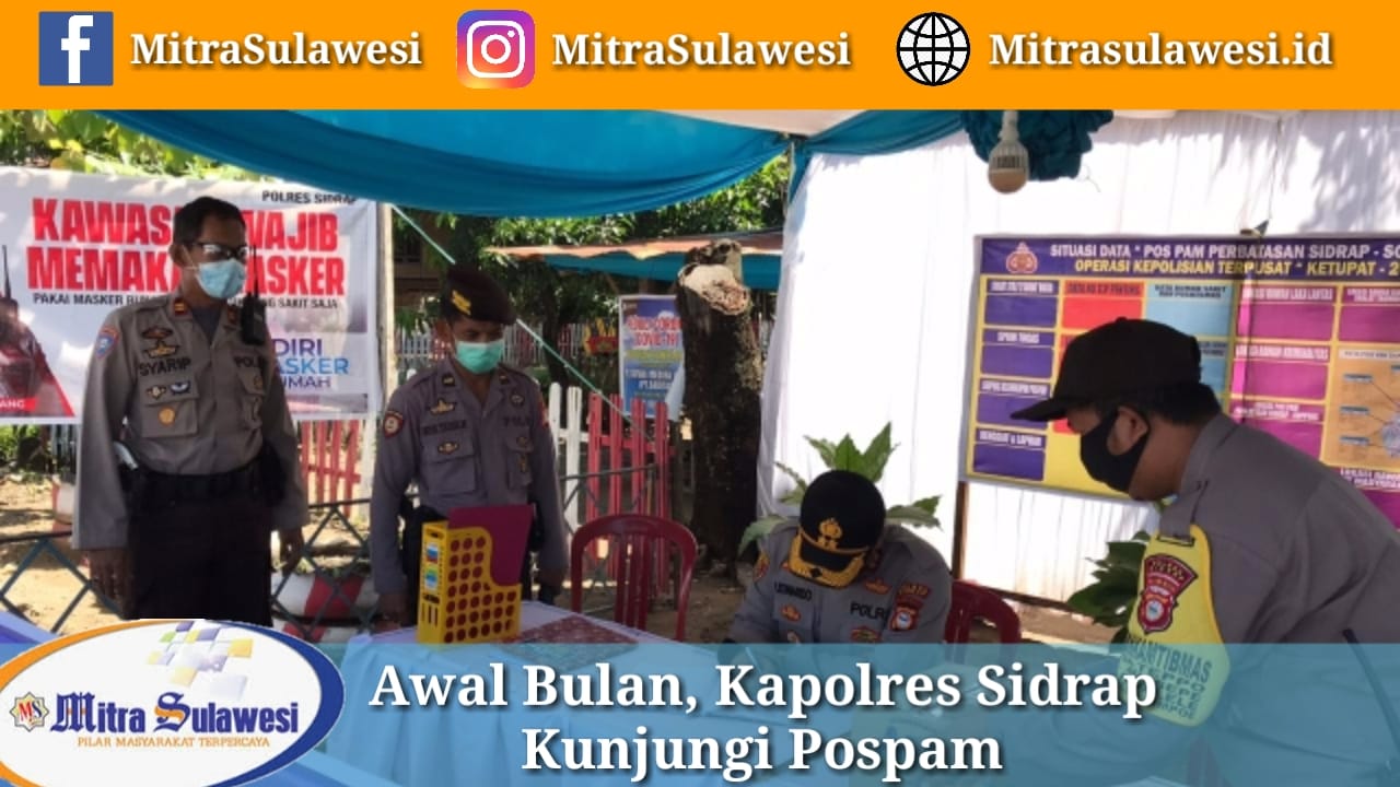 Sidrap, MitraSulawesi.id– Usai melakukan kunjungan Pos Pengamanan/Pelayanan Ops Ketupat 2020 Pospam Batas Sidrap-Enrekang dan Sidrap-Pinrang akhir bulan April kemarin.