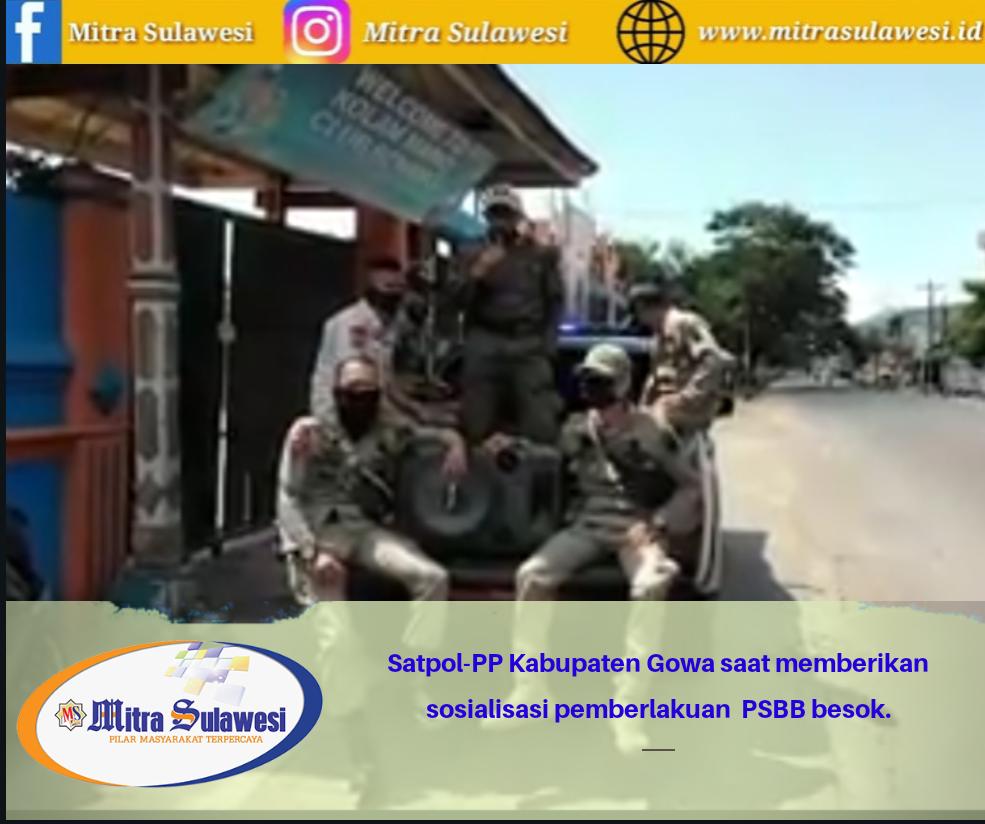 Gowa, Mitrasulawesi.id– Pembatasan Sosial Berskala Besar (PSBB) yang akan berlangsung Besok, membuat Kepala Satuan Satpol-PP Alimuddin Tiro, terjun langsung mengsosalisasikan ketengah tengah masyarakat Kabupaten Gowa.