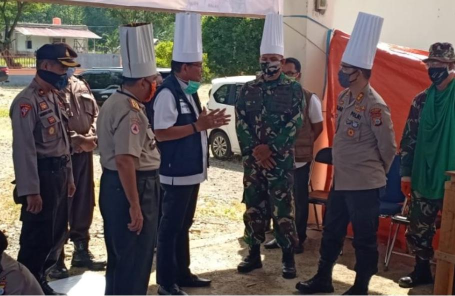 BELOPA, mitrasulawesi.id – Bupati Luwu H. Basmin Mattayang, bersama Kapolres Luwu AKBP Fajar Dani Susanto, serta Dandim 1403 Sawerigading Letkol Inf. Gunawan melakukan kunjungan ke dapur umum yang bertempat di Kantor BPBD Luwu, Rabu (6/5/2020).
