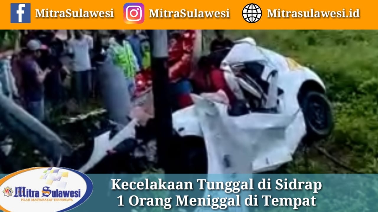Sebuah mobil Honda Brip dengan Plat DD 1021 RF hancur usai menabrak tiang listrik yang ada di bahu Jalan Poros Sengkang. Menurut keterangan warga setempat insiden tersebut terjadi sekitar pukul 02.30 wita.