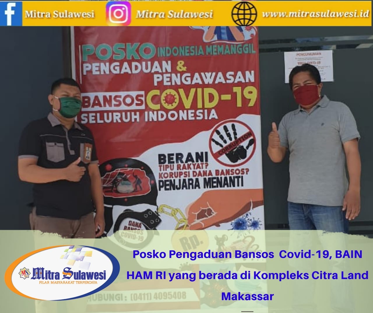 Makassar,Mitrasulawesi.id– Dewan Pimpinan Pusat (DPP) Badan Advokasi Investigasi Hak Asasi Manusia Republik Indonesia (BAIN HAM RI ), menurunkan tim khusus untuk melakukan investigasi penyaluran Bansos Covid-19 dengan banyaknya laporan adanya indikasi kuat terjadinya prakti Korupsi Kolusi dan Nepotisme (KKN) di sejumlah Kabupaten Kota di Sulawesi Selatan dan Sulawesi Barat.