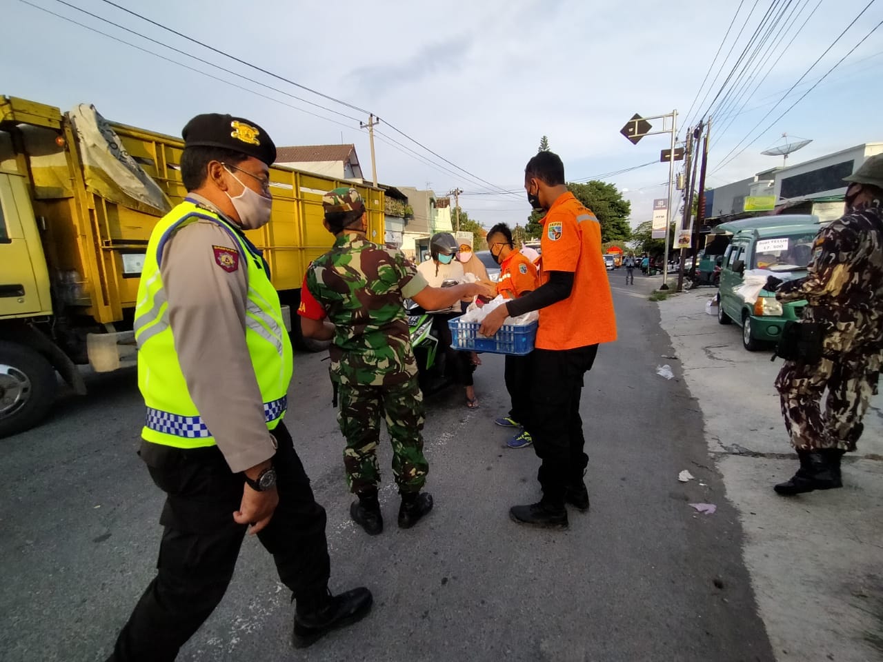 Surakarta, mitrasulawesi.id- Sinergitas Koramil 02/Banjarsari, Kodim 0735/Surakarta Serda Mujono bersama Polri dan Remaja FKPPI membagikan takjil dan masker kepada penguna jalan yang melintas disepanjang Jln. Adi Sumarmo Banyuanyar Banjarsari Kota Surakarta, Jumat (15/05).