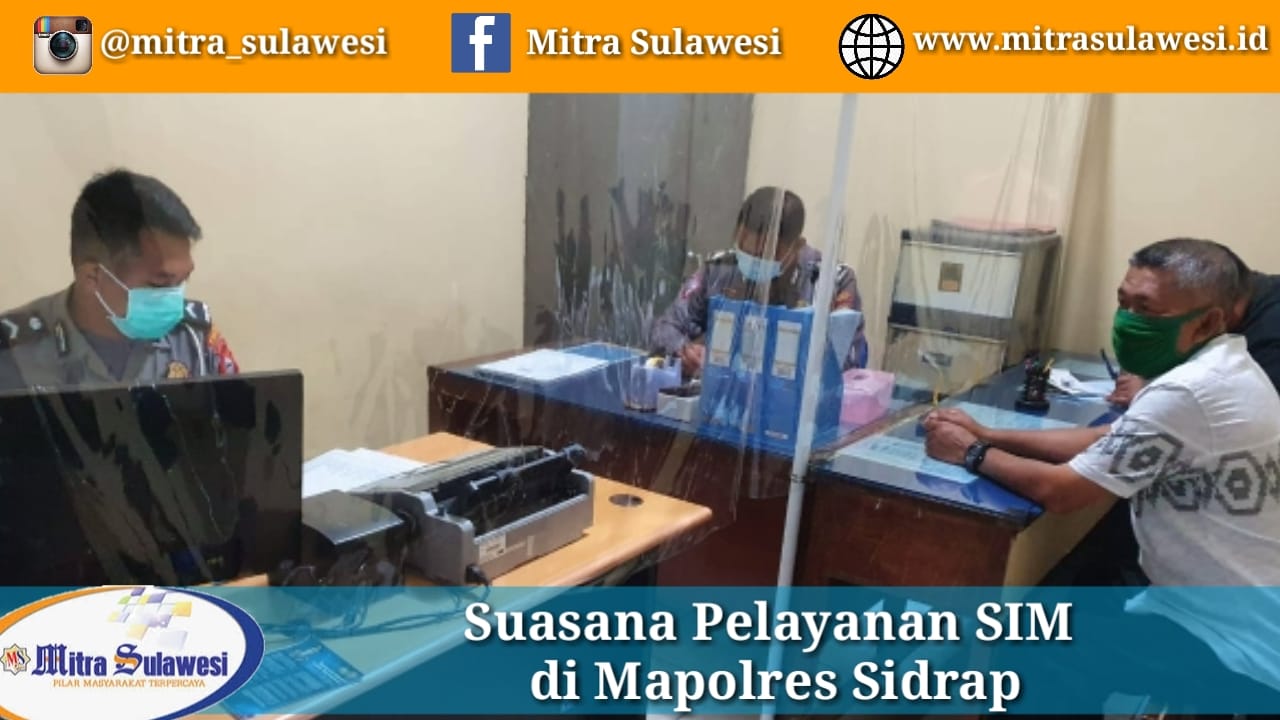 Kabarnya, di ruang Yan Sim Sat Lantas Polres Sidrap telah di terapkan Protokoler Kesehatan dalam melayani masyarakat di tengah masih mewabahnya Covid-19 ini.