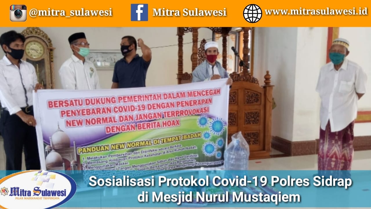 Kali ini Polres bersama Pengurus Dewan Masjid Indonesia (DMI) Sidrap melakukan sosialisasi protokol kesehatan kepada jamaah masjid, Senin, 15/06/20.