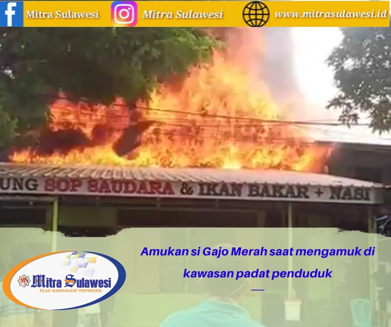 Puluhan warga berhampuran melihat api muncul di warung Sop Saudara yang berada di poros Jl. kerung kerung (Maccini Raya) kelurahan Maccini Gusung Kecamatan Makassar, Minggu (28/6).