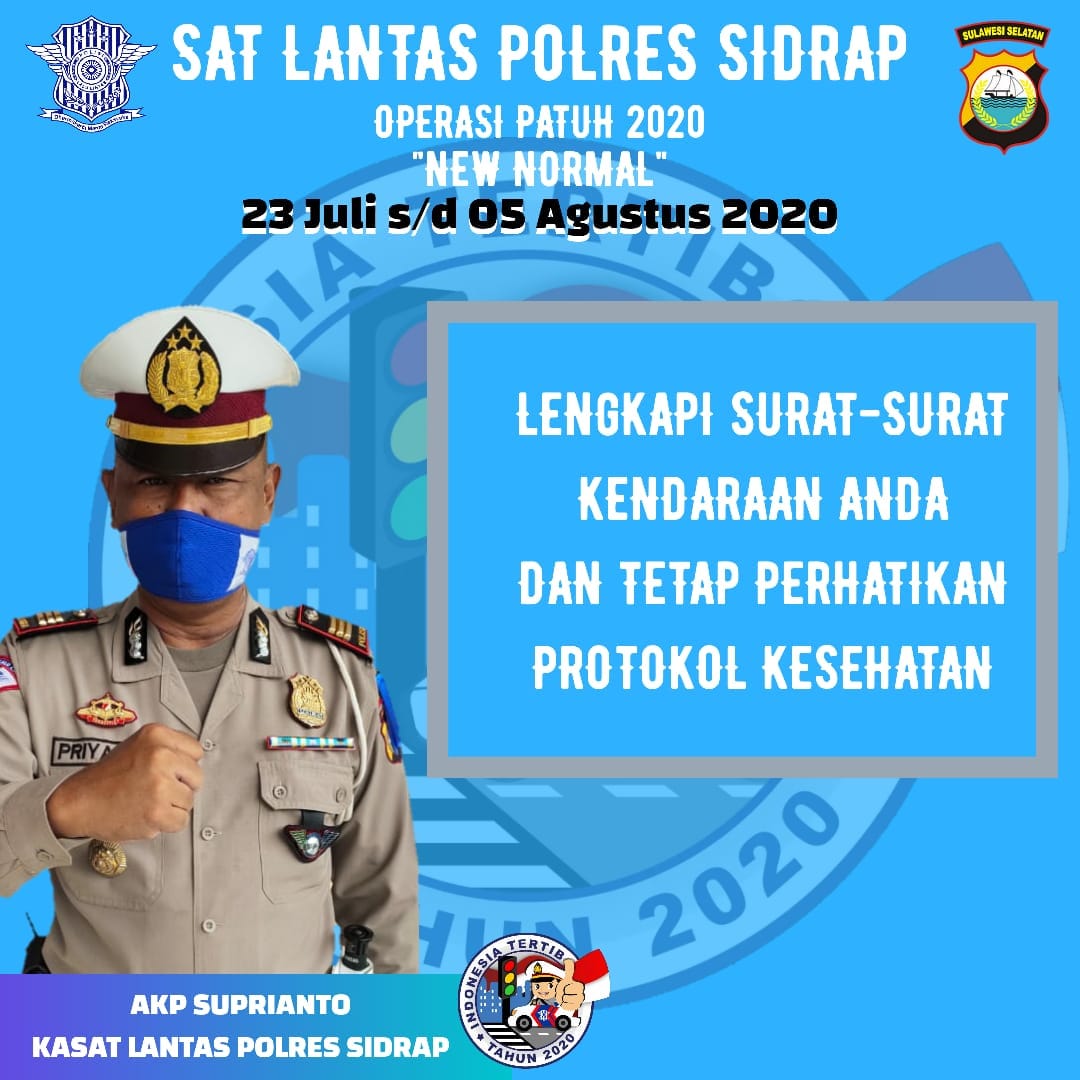 Sidrap, MitraSulawesi.id — Operasi patuh 2020 akan dilaksanakan secara serentak di seluruh wilayah Indonesia, termasuk di Kabupaten Sidrap, Sulawesi Selatan.