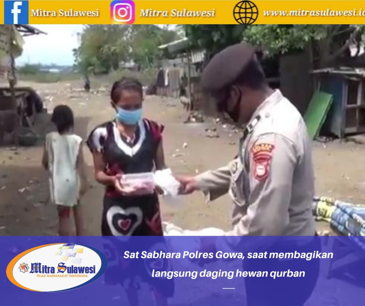 Seperti halnya terlihat pada Sabtu (1/8) pagi tadi, Satuan Sabhara Polres Gowa kembali berbagi daging qurban kepada warga prasejahtera atau kaum Dhuafa.
