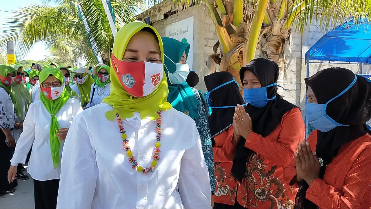 Selain kegiatan penilaian dan pembinaan PKK, Ketua TP PKK Kabupaten Kepulauan Selayar juga memberikan edukasi pencegahan penyebaran Covid-19 dengan membagikan masker kepada masyarakat.