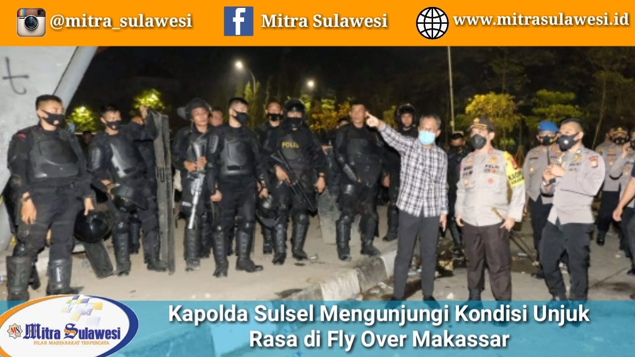 Makassar, MitraSulawesi.id– Kapolda Sulsel Irjen Pol Merdisyam bersama Dir Intel Polda Sulsel, Kabid Humas, Kabid Propam, dan Kabid Dokkes Polda Sulsel mengecek langsung situasi unjuk rasa di Flyover Makassar yang terjadi hingga malam hari, Kamis 08/10/20.