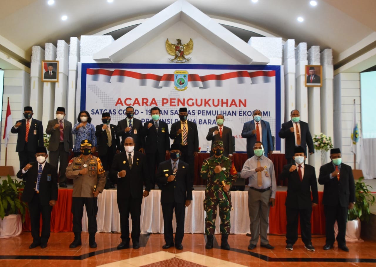 Gubernur Provinsi Papua Barat, Drs. Dominggus Mandacan dalam sambutannya mengatakan, pengukuhan Satgas Penanganan Covid-19 dan Satgas Pemulihan Ekonomi di Papua Barat akibat dampak dari Covid-19 ini dibentuk berdasarkan Peraturan Presiden Nomor 22 tahun 2020.