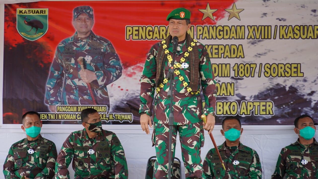 “Sebagai gambaran, waktu didalam kehidupan saya, habis untuk bertugas di daerah konflik. Oleh karena itu, saya minta kalian harus betah di Kodim 1807/Sorsel dan laksanakan tugas dengan tulus dan ikhlas,” ucap Pangdam XVIII/Kasuari, Mayjen TNI I Nyoman Cantiasa, S.E., M.Tr.(Han)