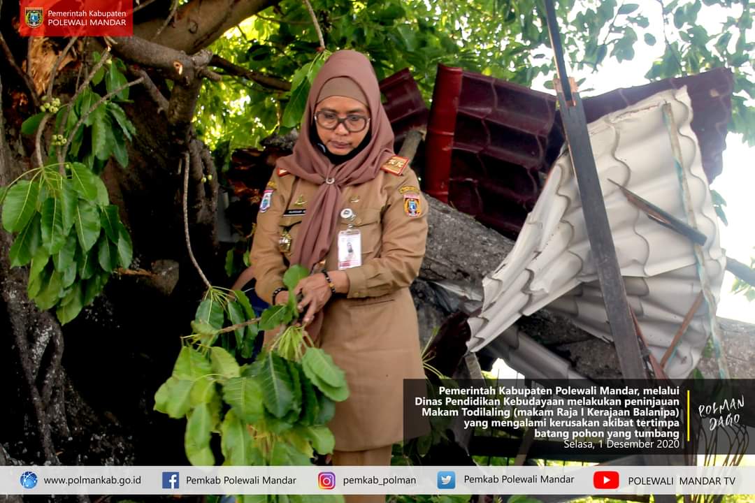 Polman.Sulbar.BeritaNasional.id — — Kepala Dinas Pendidikan dan Kebudayaan (Dikbud) Kabupaten Polewali Mandar, Andi Nursami Masdar, melakukan peninjauan dan pembersihan di kompleks Makam Todilaling (Makam Raja I Kerajaan Balanipa) yang mengalami kerusakan akibat tertimpa batang pohon beringin yang tumbang,akibat Cuaca Buruk belum lama ini.
