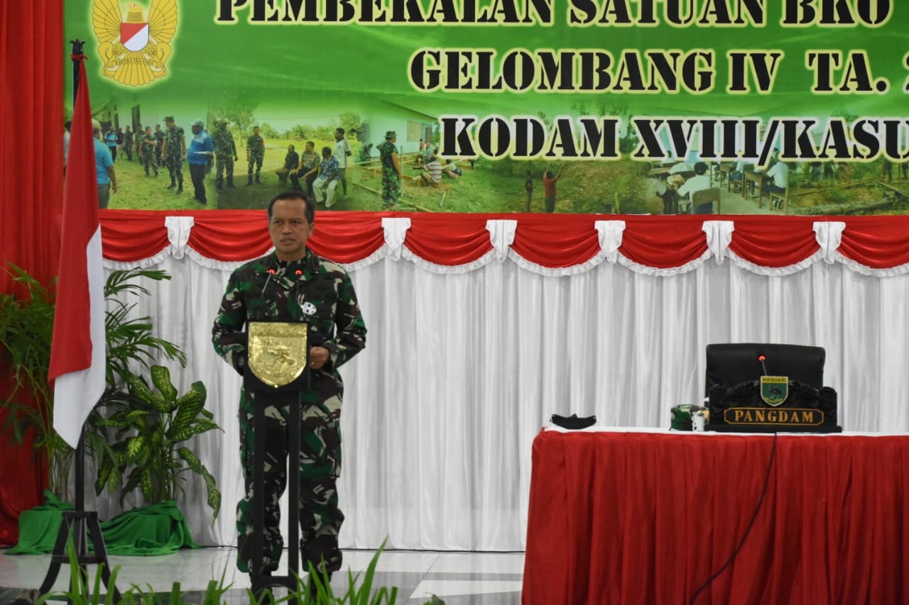 “Tugas pokok personel Satuan BKO Teritorial Gel. IV TA. 2020 di wilayah Kodam XVIII/Kasuari adalah melaksanakan tugas kewilayahan atau Pembinaan Teritorial (Binter) untuk membantu Pemerintah Daerah (Pemda), sesuai dengan amanat UU TNI No. 34 tahun 2004 dalam hal pelaksanaan tugas-tugas selain perang (Operasi Militer Selain Perang/OMSP), dengan selalu berkoordinasi dan bekerja sama dengan seluruh komponen masyarakat dan Pemda untuk mengatasi berbagai permasalahan di daerah khususnya kesejahteraan dan keamanan9,”ungkap Pangdam.