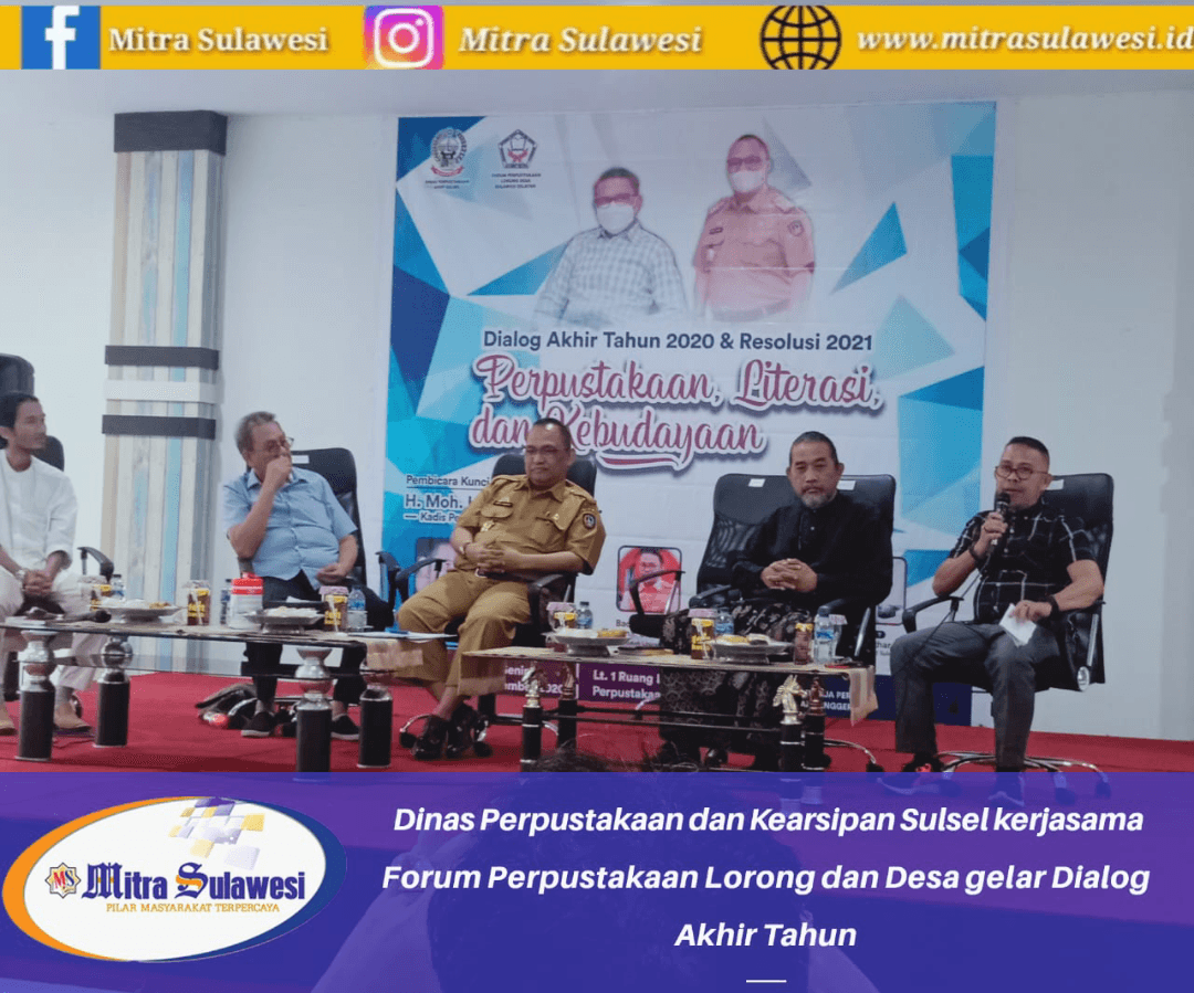 Makassar,mitraulawesi.id– Forum Perpustakaan Lorong Desa Sulsel dan Dinas Perpustakaan dan Kearsiapan (DPK) Provinsi Sulawesi Selatan, menggelar Dialog Akhir Tahun 2020 dan Resolusi 2021, Senin (28/12).