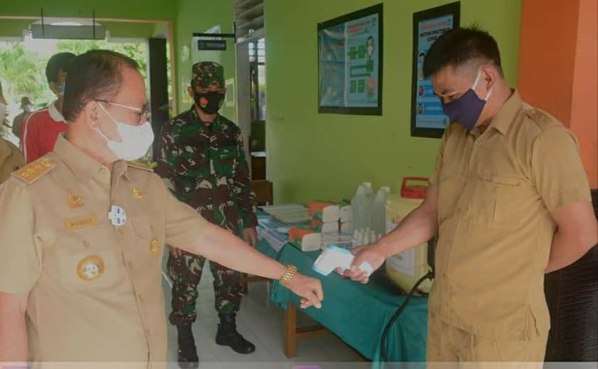 Mitrasulawesi.ID.Mateng.Sulbar —Bupati Mamuju Tengah,H.Aras Tammauni,didampingi Wakil Bupati Mateng,H.Muh.Amin Jasa,Sekkab Mateng,H.Askary Anwar,Pabung Mateng Kodim 1418 Mamuju,Tim Satgas Covid 19 Mateng,Melakukan Peninjauan Sekolah Tatap Muka,di SMP Neg.6 Topoyo dan SD Inpres Ngapaboa,Senin (4/1/2021),