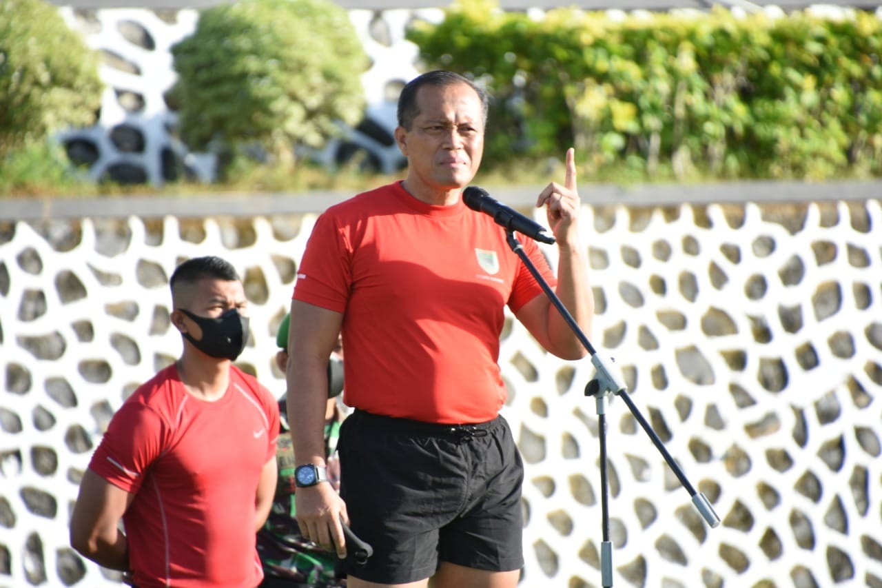 Usai Apel dilanjutkan dengan olah raga bersama, baik lari maupun jalan kaki secara perorangan dan kelompok di kompleks Makodam XVIII/Kasuari.