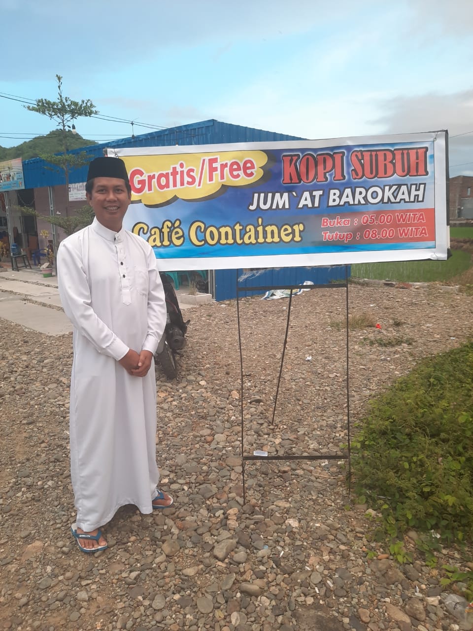Saat ditemui Herman Sukri selaku penggagas kegiatan mengatakan masyarakat bisa menikmati kopi hangat seusai melaksanakan shalat subuh sekitar pukul 05.00-08.00 Wita. Kegiatan ini rutin kita laksanakan setiap jumat, jadi ke depan bisa saja bukan hanya menyajikan kopi atau teh tetapi bisa ada berupa kue ataupun makanan. Intinya bahwa cafe kontainer berbagi sedekah di hari jumat, ujarnya.