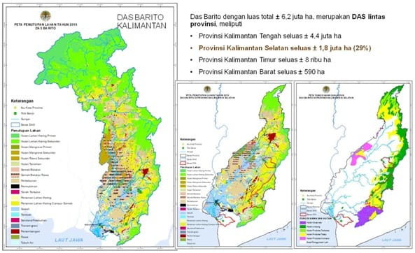 Daerah Aliran Sungai (DAS) Barito dengan luas total kurang lebih 6,2 juta ha, merupakan DAS lintas provinsi, meliputi Provinsi Kalimantan Tengah seluas kurang lebih 4,4 juta ha, Provinsi Kalimantan Timur seluas kurang lebih 8 ribu ha, Provinsi Kalimantan Barat seluas kurang lebih 590 ha, dan di Provinsi Kalimantan Selatan sendiri seluas kurang lebih 1,8 juta ha atau setara 29%.
