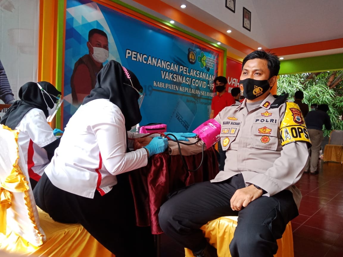 Usai penyuntikan terhadap dirinya, Kapolres Kepulauan Selayar, AKBP Temmangnganro Machmud, S.IK, MH, mengimbau kepada seluruh masyarakat agar mengikuti kebijakan Pemerintah untuk kesehatan seluruh masyarakat dan mencegah penularan wabah virus Covid-19.