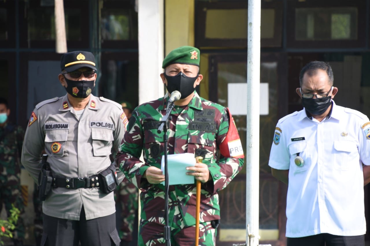 Manokwari mitrasulawesi.id – Danyonif 761/Kibibor Akinting (KA) Mayor Inf M.M. Jenry Polli dihadapan peserta Apel Gabungan Pendisiplinan Protokol Kesehatan Covid-19 TA. 2021, yang melibatkan para Prajurit Yonif 761/KA, Koramil 1801-02/Warmare, serta Polsek, Distrik, dan Puskesmas Warmare, Rabu (3/2/2021) pagi, di lapangan Kantor Distrik Warmare, Manokwari, Papua Barat.