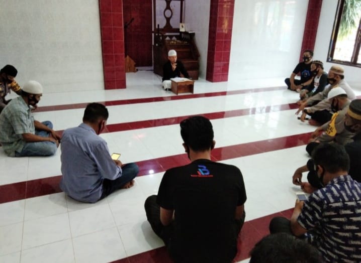 Disela sela memperingati HPN tahun 2021, usai makan siang bersama, dilaksanakan pesan pesan agama di Mesjid Nurul Amin Polres, oleh Ustadz Abu Muqbil Rahmat.