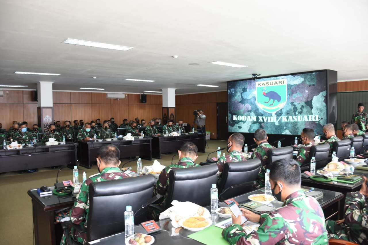 XVIII/Kasuari TA 2021 oleh Asrendam, serta paparan para Asisten Kasdam tentang Progjagar di bidang tugas masing-masing.