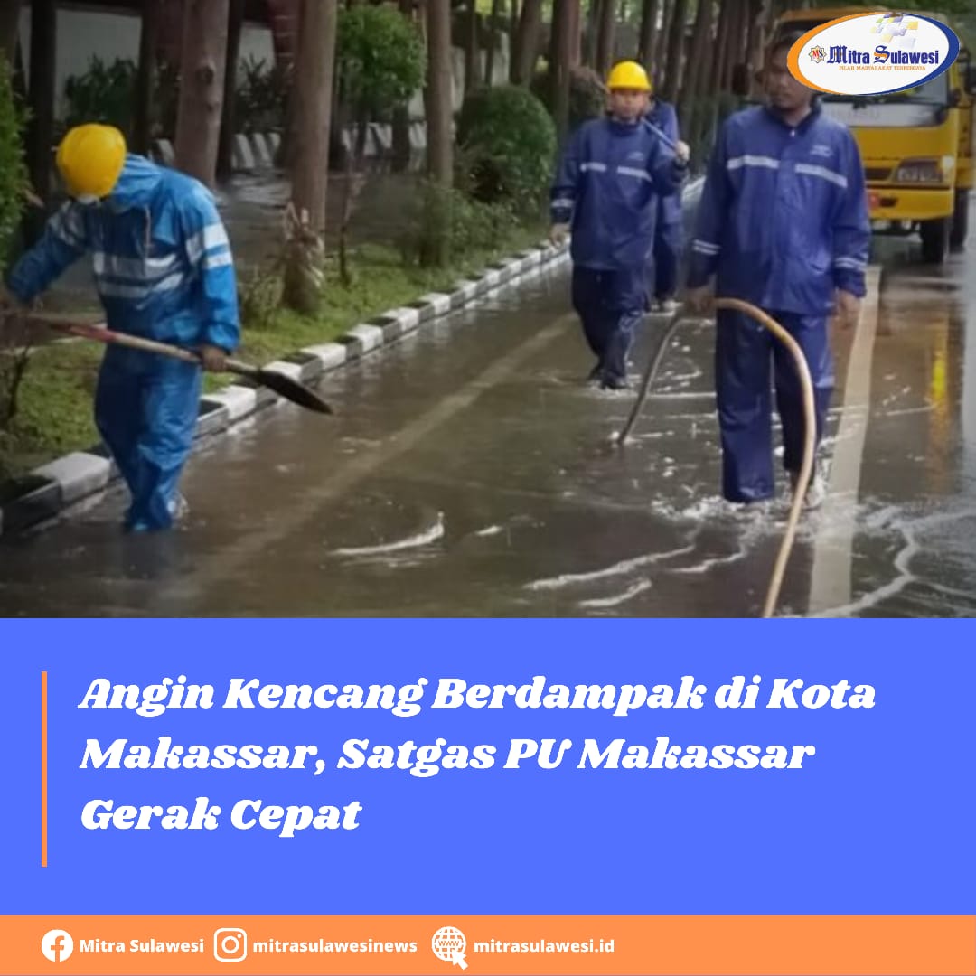 Humas Dinas PU Kota Makassar, Hamka Darwis yang melaporkan pagi ini menyampaikan pihaknya telah merespon cepat dampak angin kencang yang terjadi di kota Makassar. Hal tersebut, kata Hamka, berdasarkan himbauan Walikota Makassar kepada seluruh SKPD agar selau siaga dalam mengantisipasi dampak dari musim penghujan tahun ini. “Maka Dinas PU Kota Makassar bergerak melakukan respon cepat ke beberapa lokasi yang terjadi genangan air dan perbaikan instalasi lampu jalan yang rusak akibat terkena pohon tumbang,” ujarnya.