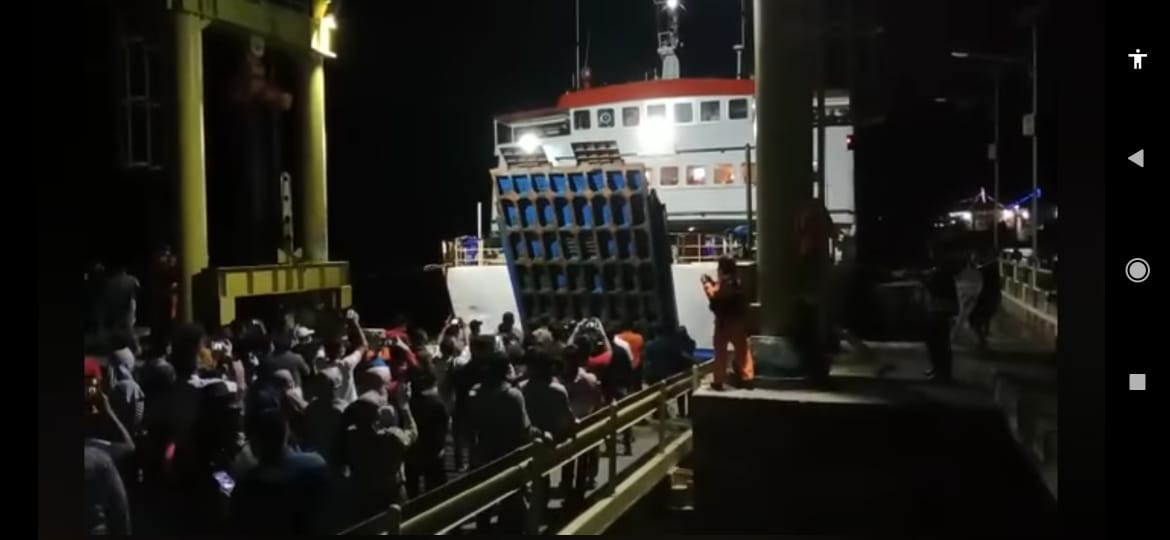 Terpantau saat turun dari kapal, para penumpang langsung dibagikan makanan baik dari Pihak ASDP maupun dari TNI – Polri serta Tim gabungan Pemerintah Kabupaten seperti Dinas Sosial, BPBD dan Dinas Perhubungan.