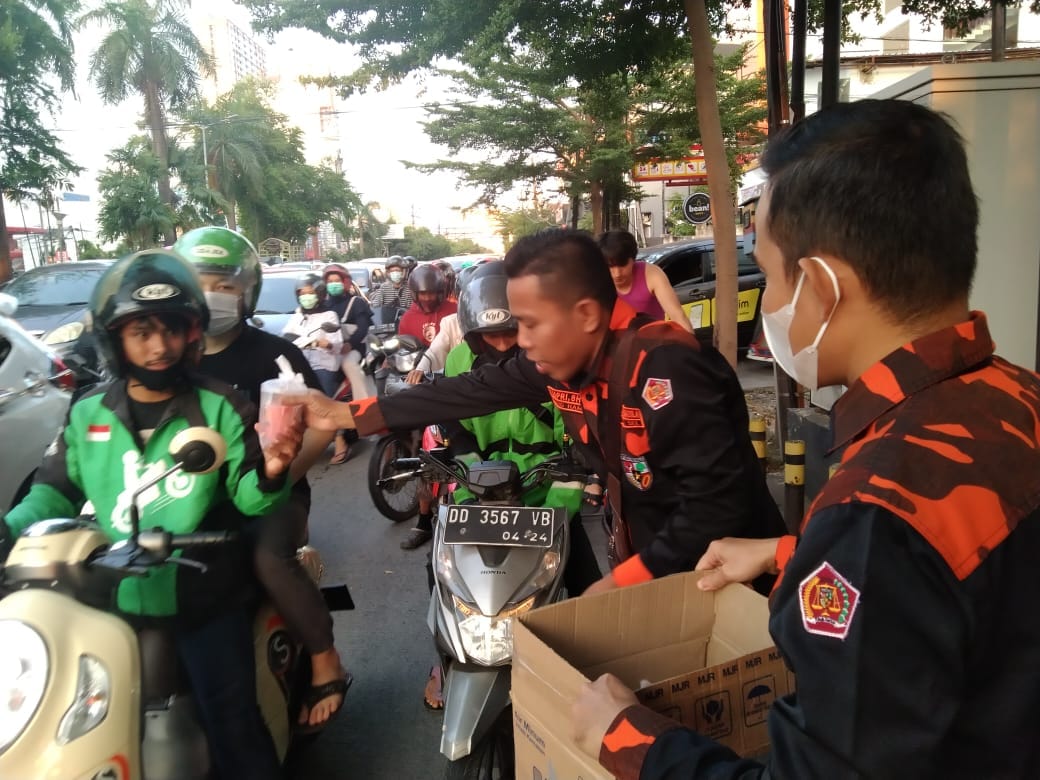 Para Advokat muda Sul-Sel ini melakukan giat ramadhan dengan membagikan paket takjil buka puasa bagi pengguna jalan yang tidak sempat berbuka puasa dirumahnya.