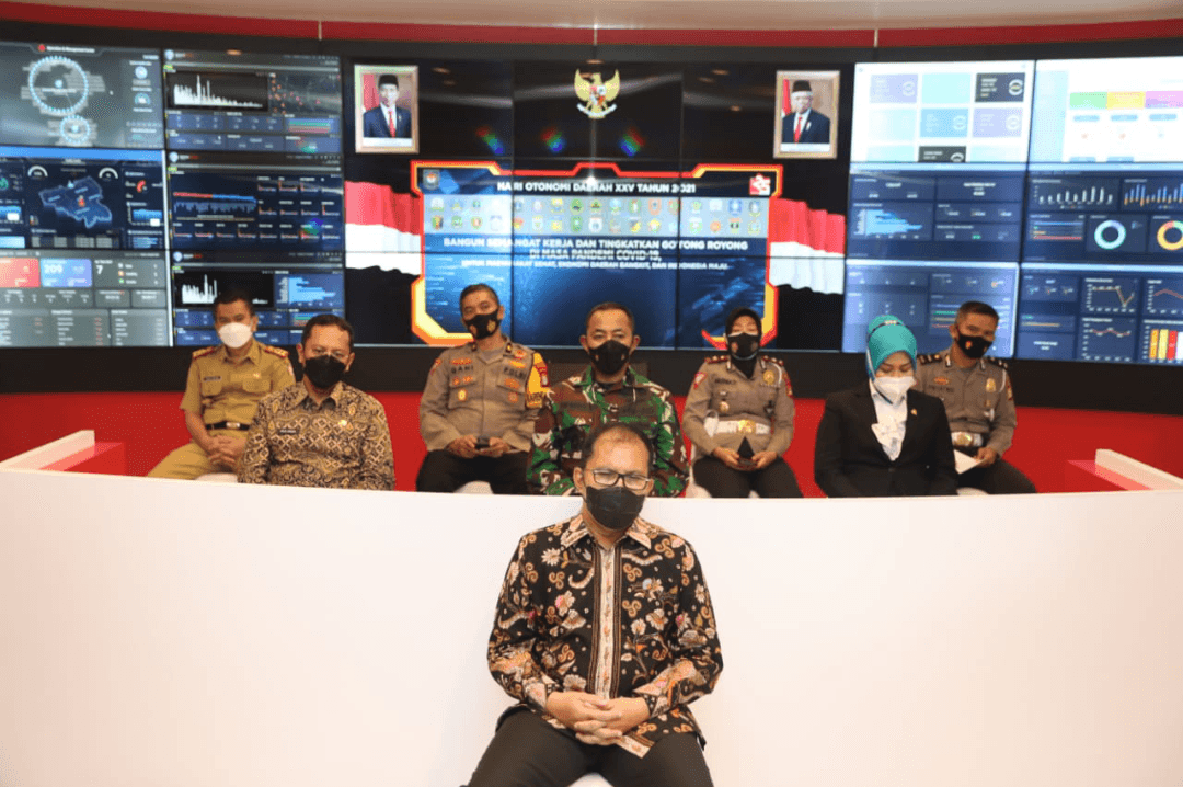 Makassar,Mitrasulawesi.id– Wali Kota Makassar, Moh. Ramdhan Danny Pomanto, beserta Forkopimda Makassar mengikuti puncak perayaan Hari Ulang Tahun (HUT) Otonomi Daerah (Otda) ke-25 secara virtual, di Command Center Balaikota, Senin (26/4/21).