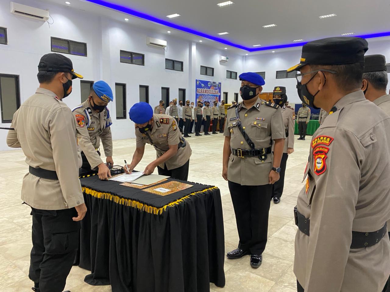 Pengambilan sumpah jabatan yang ditandai dengan penandatanganan berita acara serah jabatan dan penandatanganan pakta integritas diikuti Para PJU, para Kapolsek dan Perwira serta masing masing perwakilan dari Bagian, lingkup Polres Kepulauan Selayar.