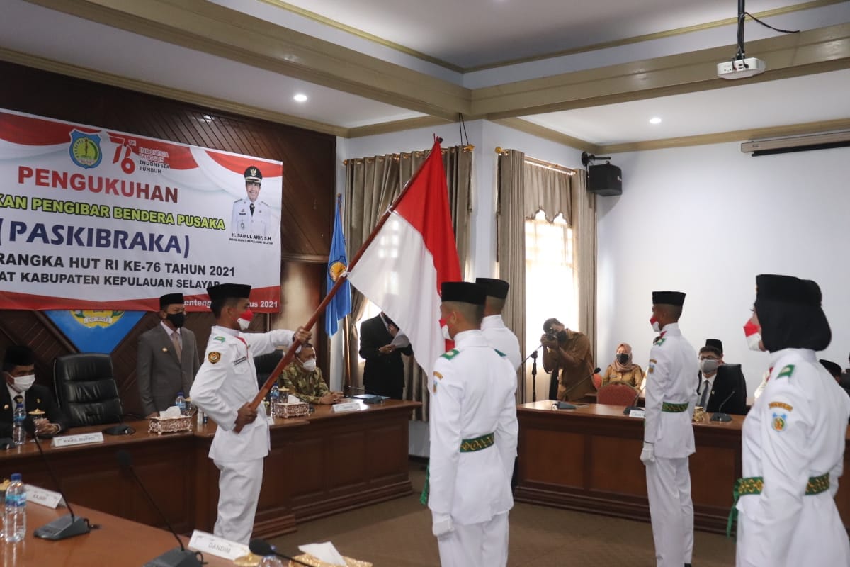 SELAYAR, mitrasulawesi.id – Bupati Kepulauan Selayar Muh. Basli Ali mengukuhkan Pasukan Pengibar Bendera Pusaka (Paskibraka), tingkat Kabupaten Kepulauan Selayar, Senin (16/8/2021).