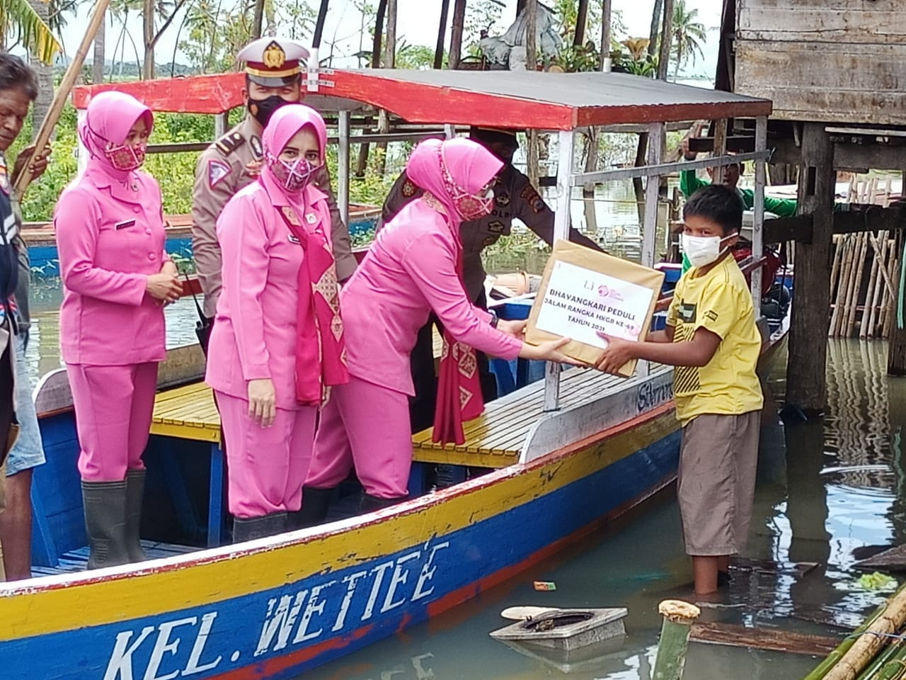 Dalam kegiatan tersebut Ibu Ketua Bhayangkari Cab Sidrap bersama pengurus melakukan peninjauan lokasi bencana banjir dengan menggunakan perahu mengelilingi lokasi yang terkena bencana banjir di Kelurahan Wette’E, Kecamatan Panca Lautang, Kabupaten Sidrap serta memberikan bantuan Sosial kepada warga masyarakat yang terdampak banjir.