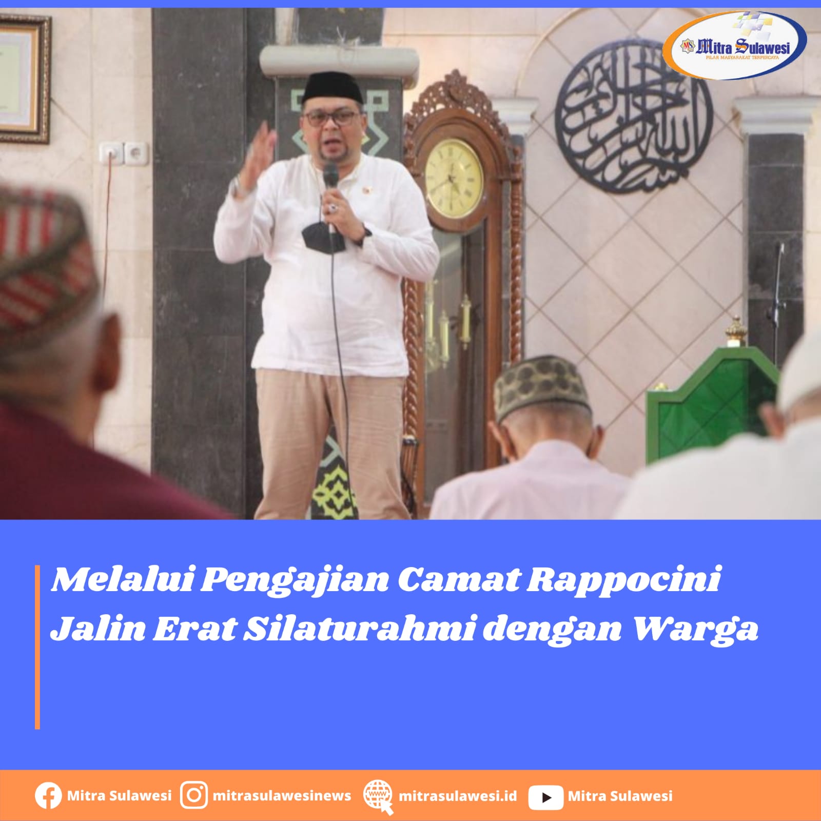 Makassar, MitraSulawesi.id– Camat Rappocini Syahruddin Gelar pengajian guna meningkatkan iman dan ketakwaan kepada Allah SWT juga menambah pengetahuan tentang agam Islam bertempat di Masjid Nurul Hijrah Jl. Tamalate III/VI No. 17, Jumat (04/02/2022).