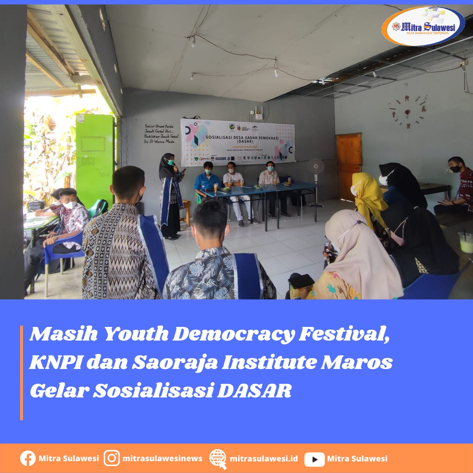 Maros, MitraSulawesi.id– Menutup seluruh rangkaian kegiatan Youth Democracy Festival, DPD KNPI Maros bersama Saoraja Institute menggelar Sosialisasi Desa Sadar Demokrasi (DASAR). Kegiatan dilaksanakan di Desa Purnakarya Kecamatan Tanralili Kabupaten Maros (9/2/2022).