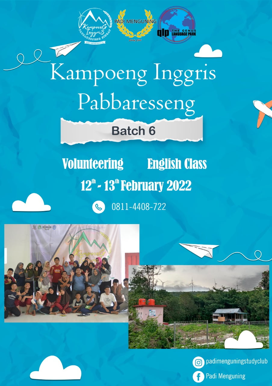 Kampoeng Inggris bakal dikemas dalam bentuk kegiatan English Class dan Voulenter Mengajar yang dilaksanakan pada 12-13 Februari 2022 di area Kampoeng Inggris Pabbaresseng.